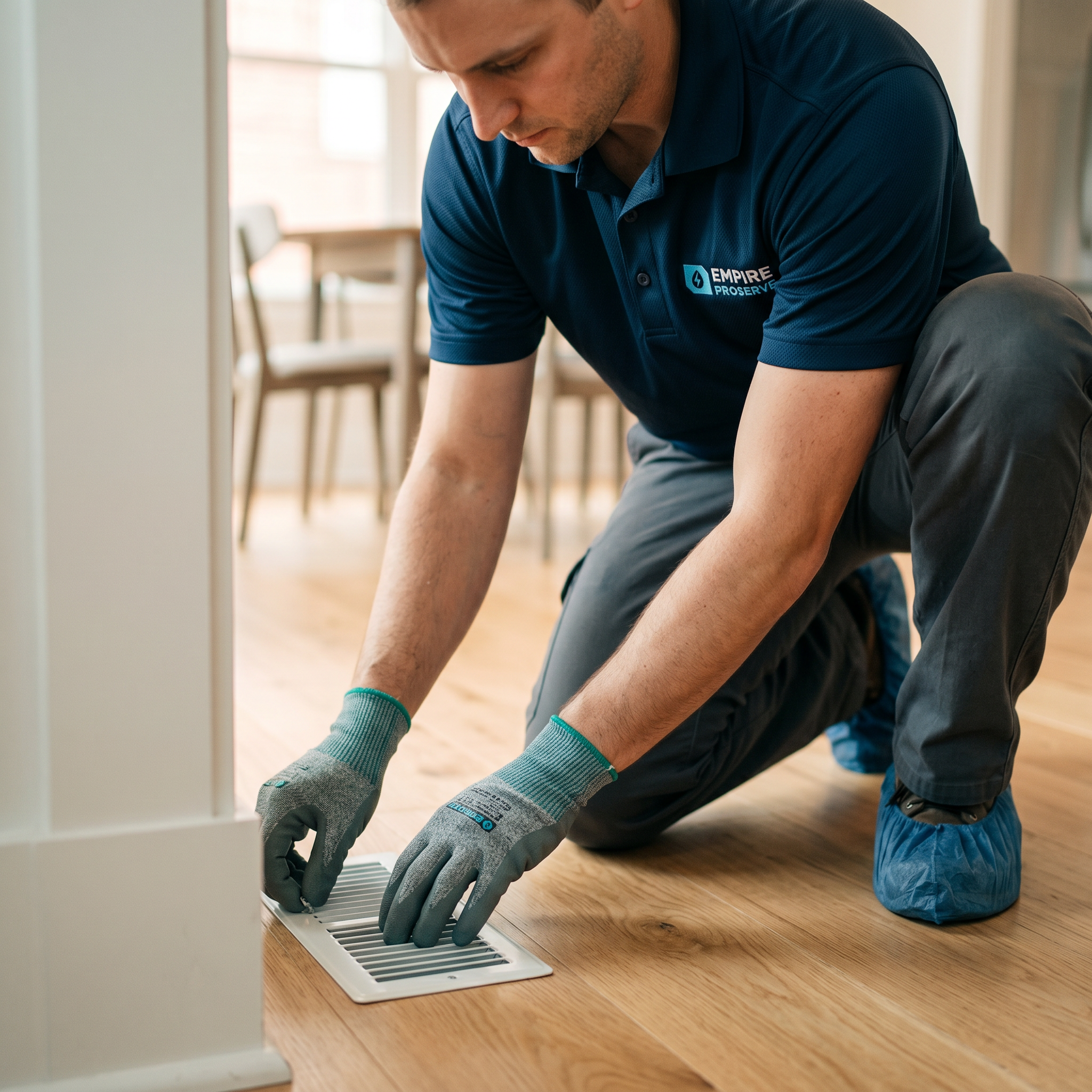 Professional air duct cleaning removes the buildup at the source. Not masked. Not filtered. Extracted — leaving your system moving clean air instead of recycling what has been sitting in the ductwork for years.