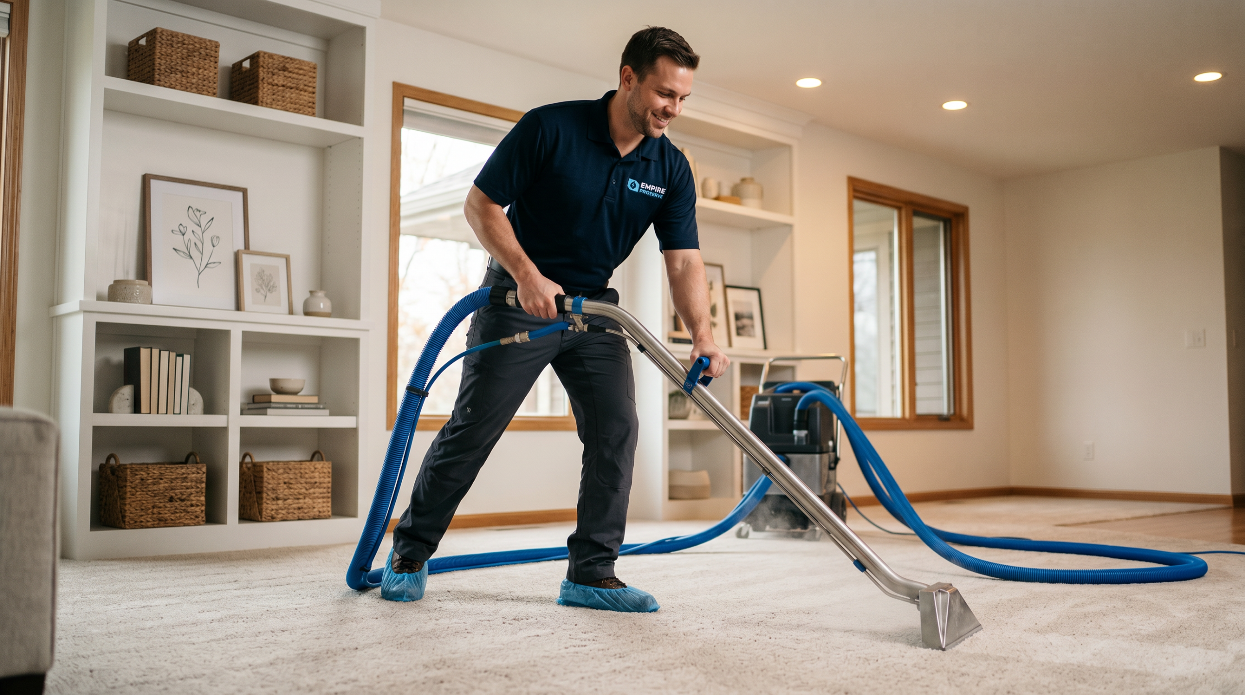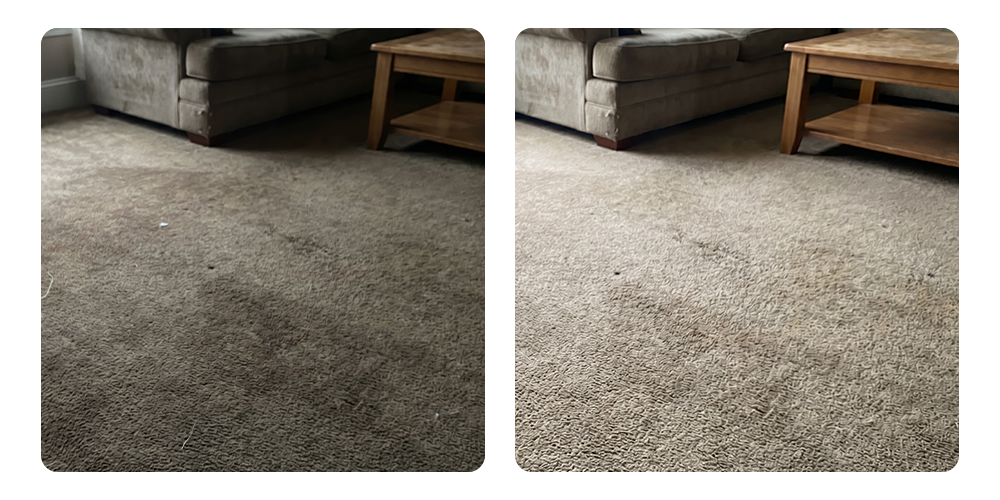 Pet urine penetrates past the carpet surface into the backing and padding beneath. Spray-and-blot methods and most household products address the top layer only. The untreated source continues to off-gas odor — activated by humidity, temperature, and foot traffic. In Carrollton summers, that cycle gets significantly worse.